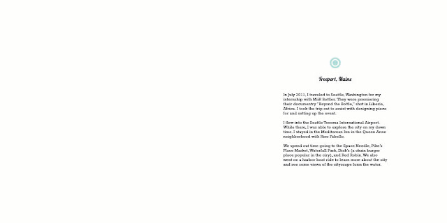 I am in the process of putting together a book that describes my travels and project into more detail. The images below are where I am at right now. So far I have just been playing with the layouts of the table of contents, introduction, locations, and location explanations. The places that have a dashed line, I am considering sewing a line, scanning it in and using it as a image but I am not sure if this is what I want yet. Also, I want to add more spread such as infographs comparing the trips.